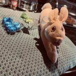 - Depois costure a mão as orelhas e junte-as franzindo para fazer a dobra (elas não serão enchidas com a ovada e a abertura é para fechar melhor sem a costura) se quiser enfeite-as com lacinhos ou flores e ponha um laço no pescoço.