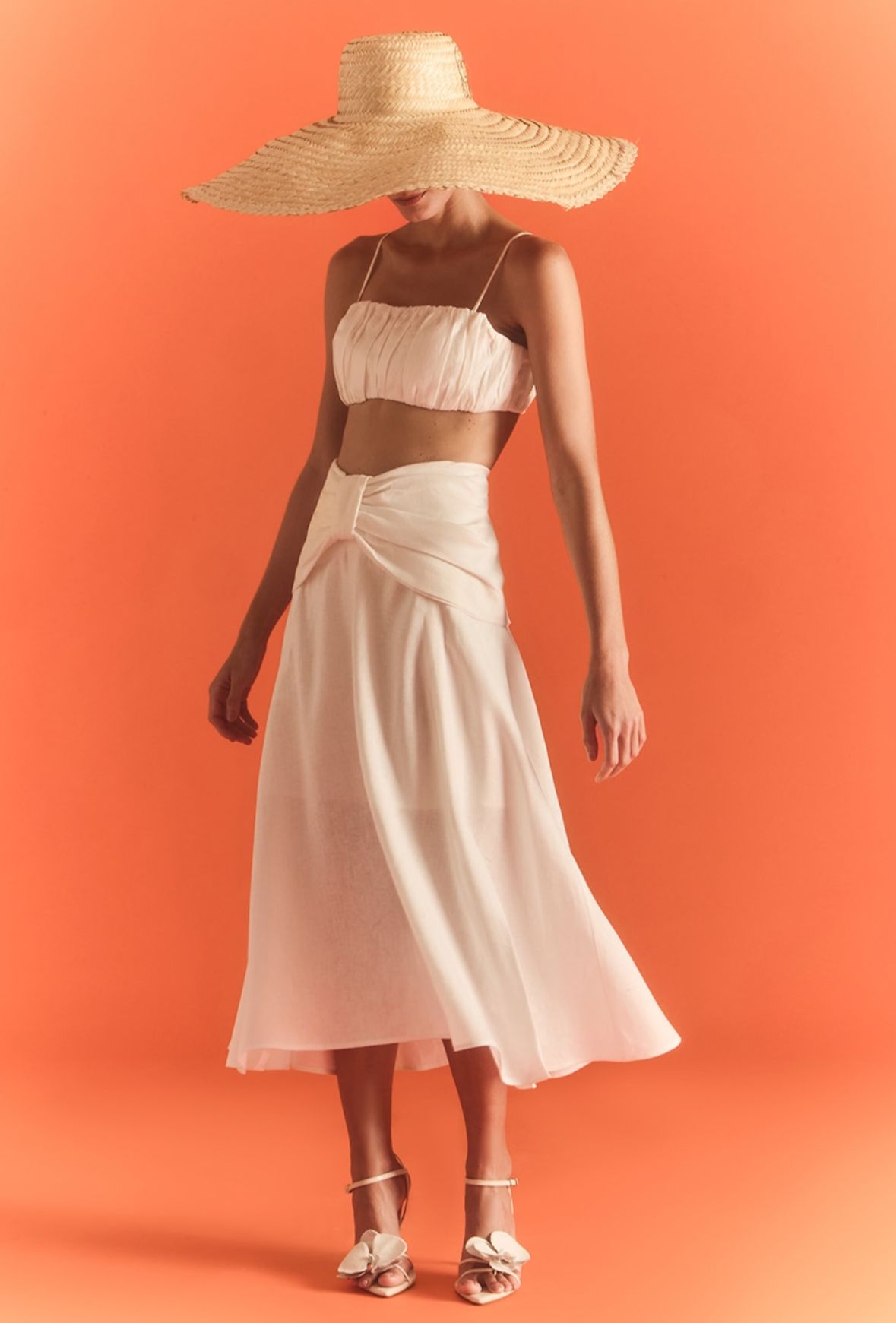 Já na CIA Marítima, várias opções têm encantado os visitantes do BravaMall e se destacam pela versatilidade e sofisticação da moda praia brasileira. Uma delas é um conjunto floral de saia midi com cropped, leve e fluido, ideal para eventos diurnos ou momentos casuais à beira-mar.
