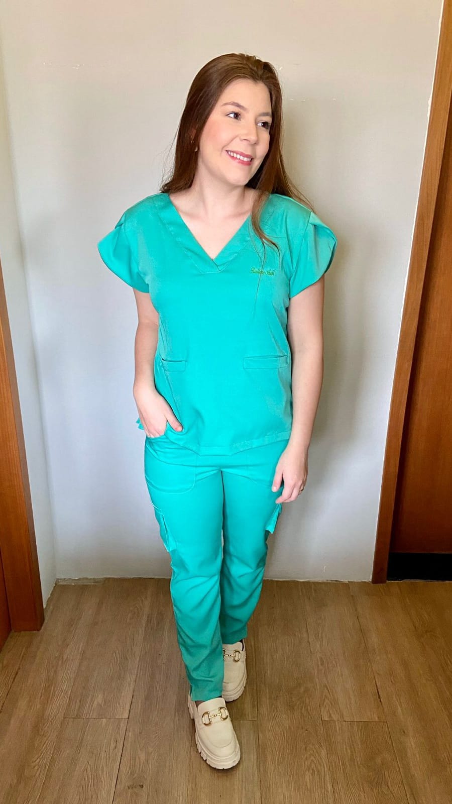 Aos poucos foi tomando coragem e tirando o projeto do papel, fez alguns jalecos e a sua nora fez as fotografias colocar em seu catálogo. Mauren iniciou há pouco tempo e já vendeu 10 jalecos, 3 macacões e 4 scrubs.