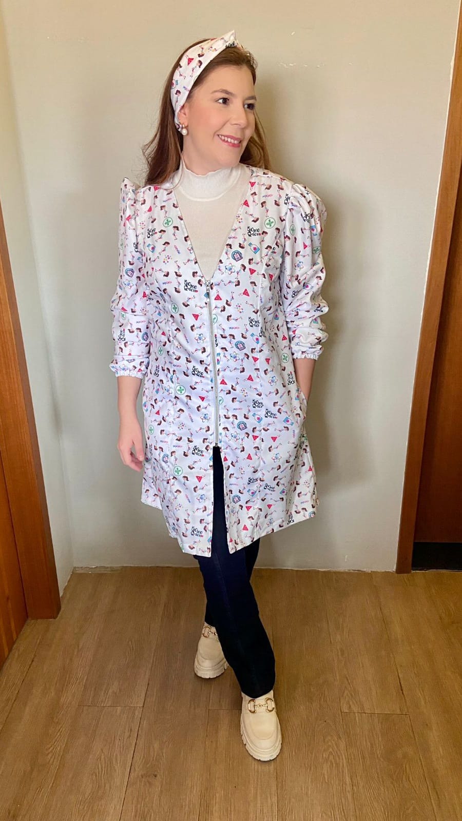 Quando iniciou a série de jalecos na Escola de Costurar Diana falou que era um nicho que poderia trazer renda extra e até mesmo passar a ser a renda principal no seu ateliê e a aluna CMC (Turma 4) Mauren Ohara está com muitas encomendas de jalecos, macacões e scrubs.