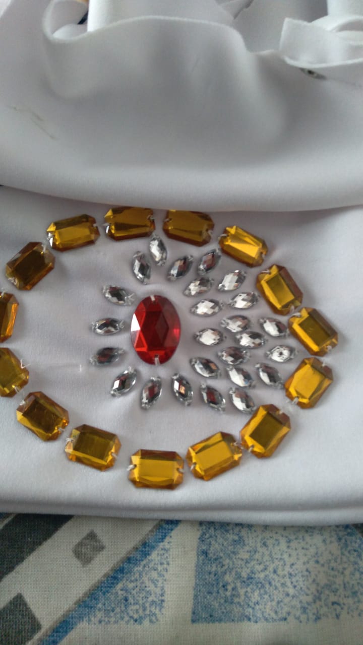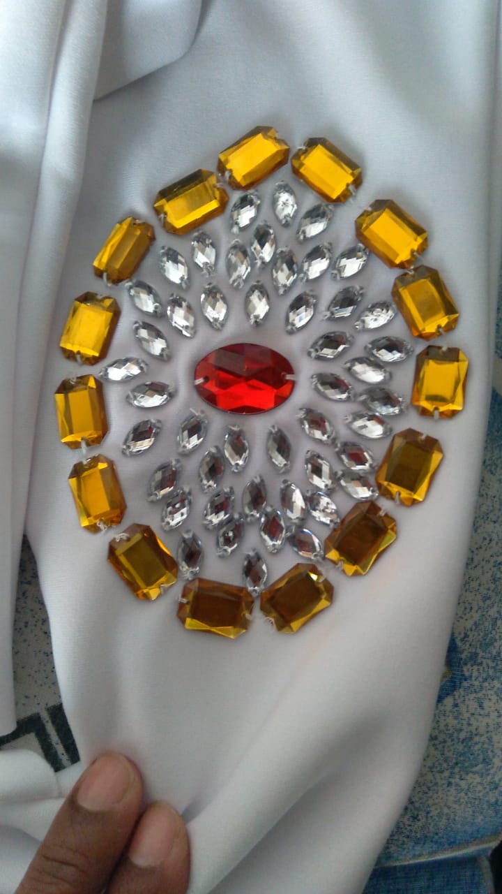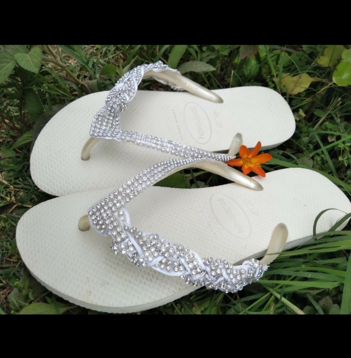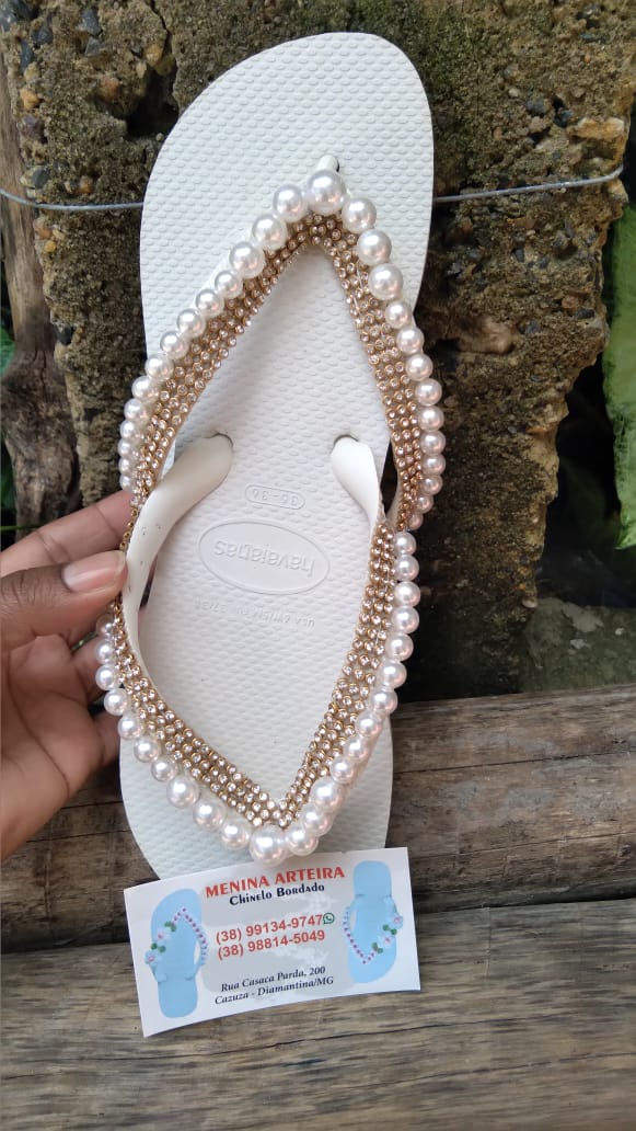 Um dia, enquanto estava em sua casa costurando, Luzia foi surpreendida por uma visita inesperada. Uma cliente entrou em sua casa e a encontrou bordando com um chinelo de dedo, adornado com strass e pedrarias. Pois além de excelente costureira, Luzia faz lindos bordados com pedrarias.