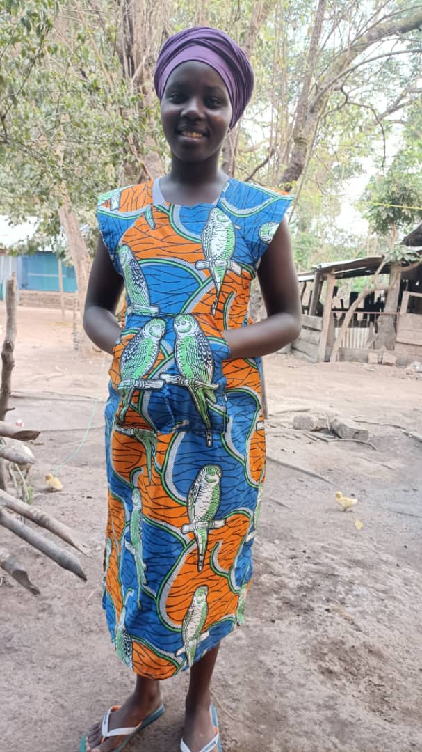 Vestido feito pela líder do projeto com a máquina que levei para Guiné. Essa menina é uma moradora do projeto