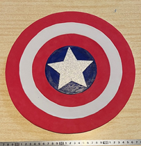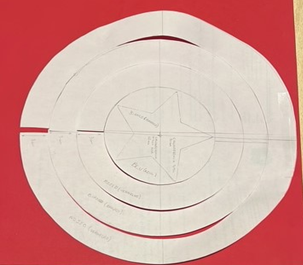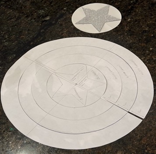 TOTAL aprox. 30cm – dividido em 4 partes para que o centro possa ser encontrado e o círculo azul com 12cm de circunferência e a estrela inseridos