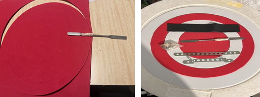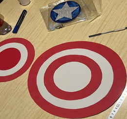 Depois de traçar os círculos no EVA, corte-os com um estilete e nunca jogue fora as sobras! Lembre-se de que tudo se transforma! Quem sabe em um outro escudo ou tiro ao alvo!